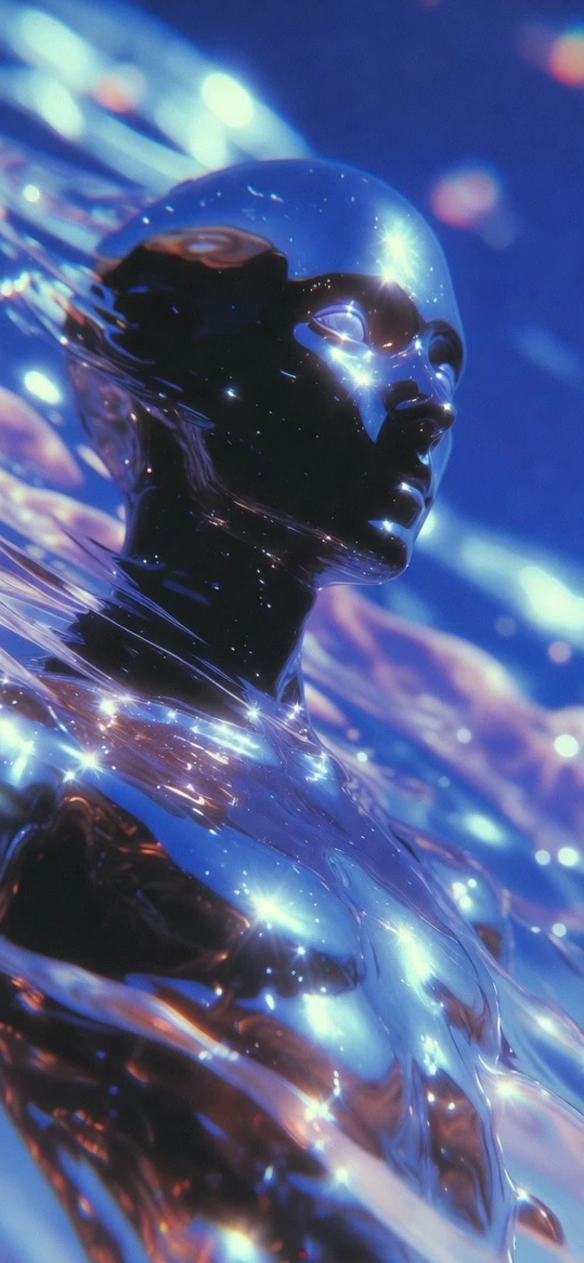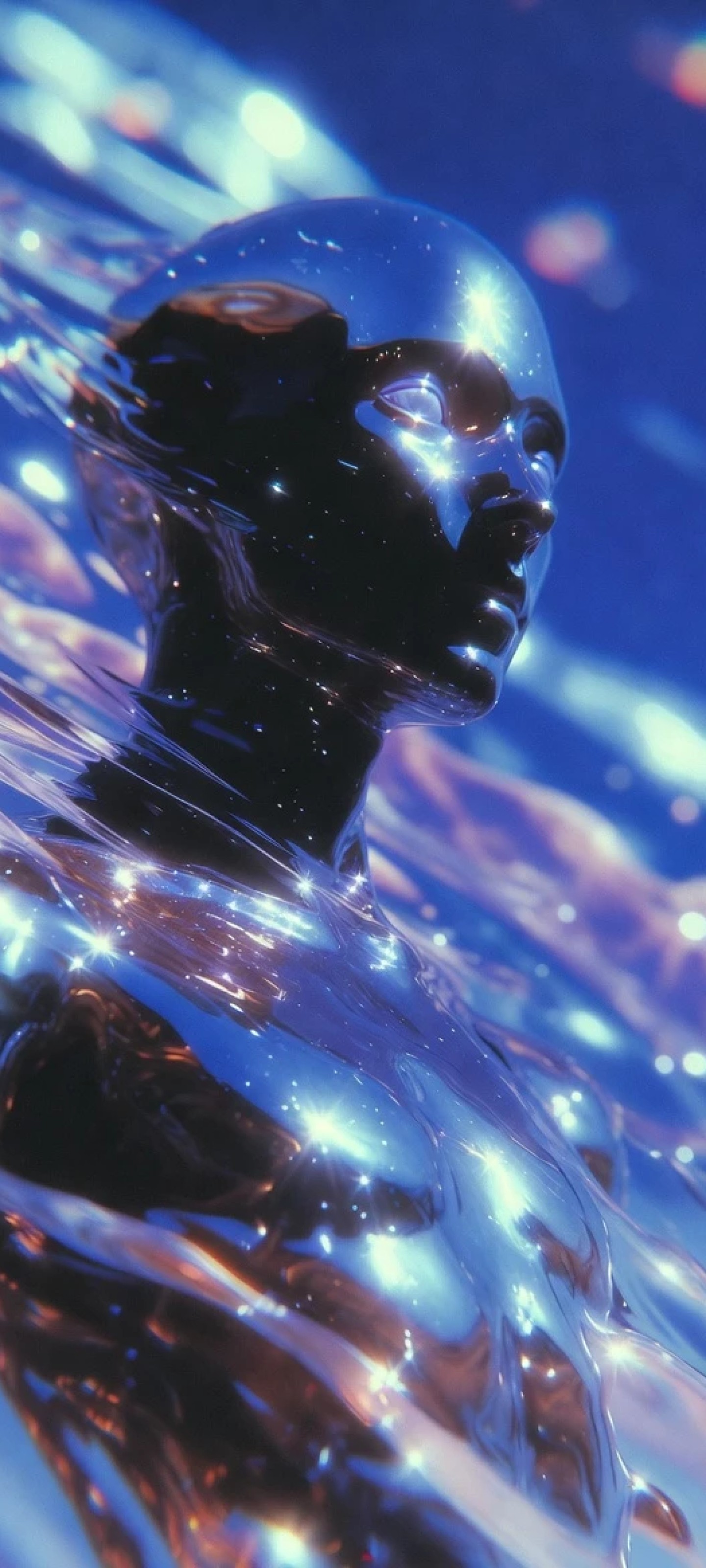 Un Personnage Humanoide Avec Une Surface Brillante Et Reflechissante Dans Un