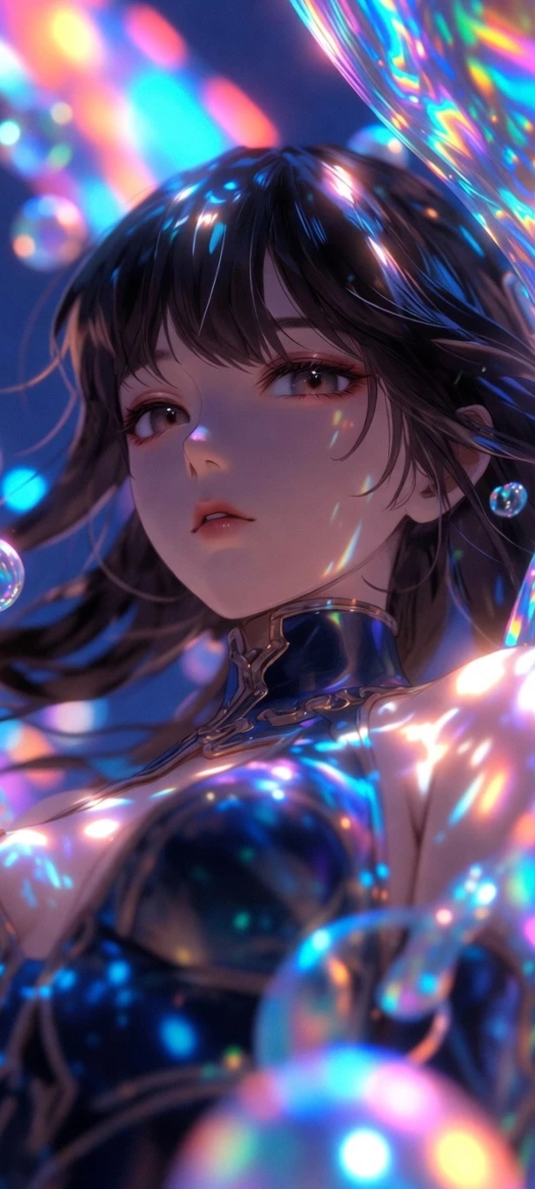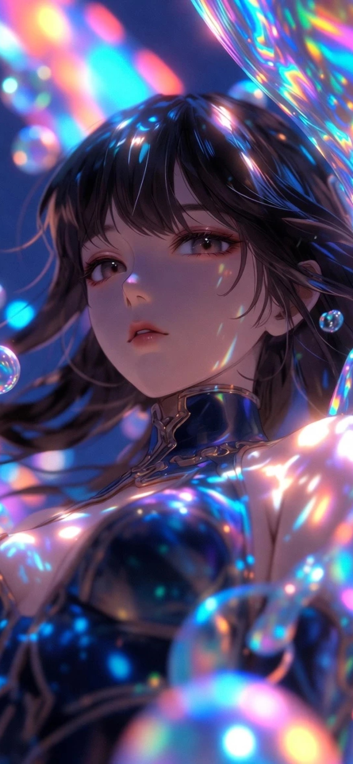 3d Blender Style Environment With Prismatic Colors And Ethereal Bubbles